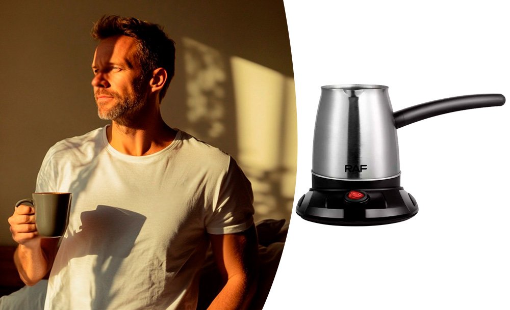 Електрична турка RAF R127 – найкраща альтернатива дорогій та габаритній кавомашині. Сам апарат займає мінімум місця і потребує лише робочої розетки.