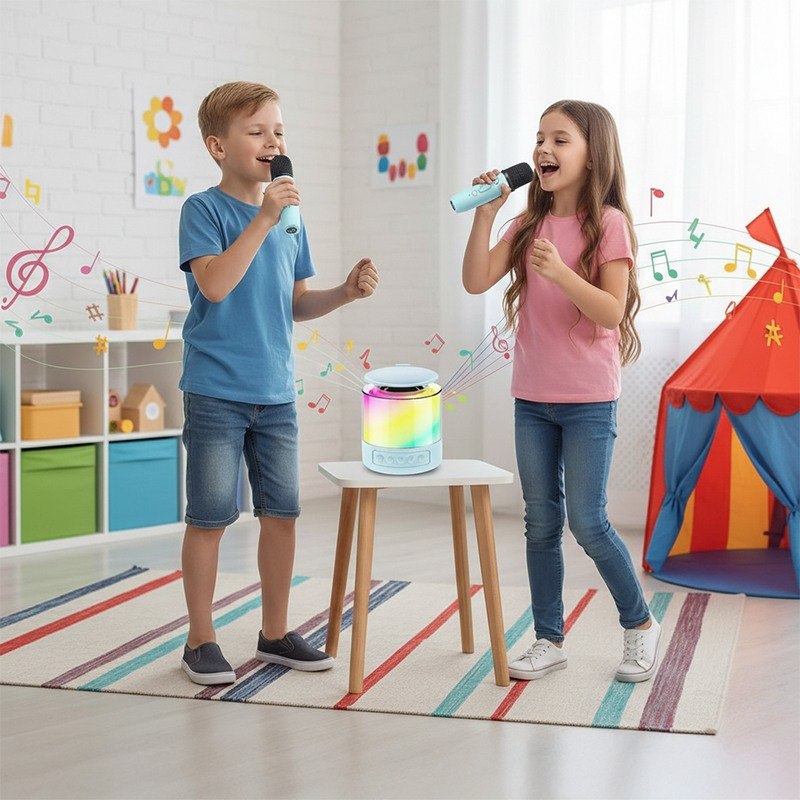 Караоке-набір K19 – готове рішення для сімейних свят та дружніх зустрічей. Портативна колонка з яскравим LED-підсвічуванням перетворює будь-яке місце на запальний танцпол. Чистий стереозвук з глибокими басами та динамічна світломузика створюють атмосферу справжньої вечірки де завгодно – вдома, на природі чи в поїздці.