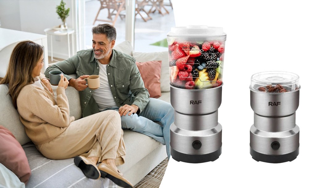 Кавомолка з блендером 2 в 1 RAF R-7126 — ідеальне поєднання стилю та функціональності. Потужний мотор у 300 Вт легко справляється з подрібненням кавових зерен, спецій та горіхів, а знімна чаша з нержавіючої сталі гарантує довговічність і простоту в догляді.