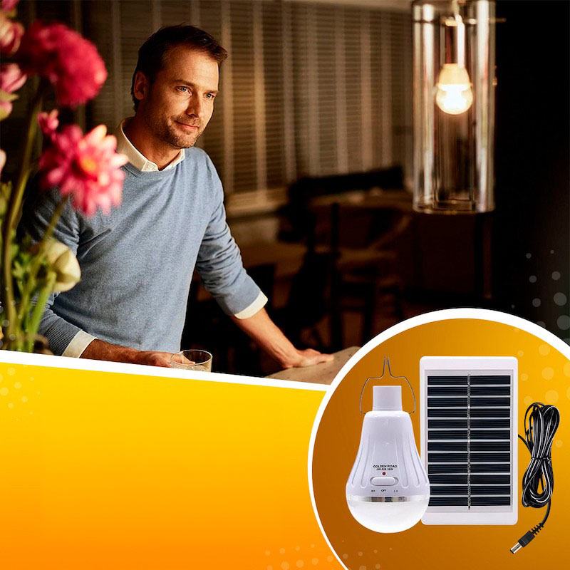 Лампа світлодіодна акумуляторна EQ018 забезпечена сонячною панеллю та акумулятором, що дозволить заряджати її від енергії сонця навіть у похмуру погоду та використовувати у темний час доби у приміщенні, на вулиці, у дворі чи наметі. Лампа має 2 режими яскравості – інтенсивний і економічний.