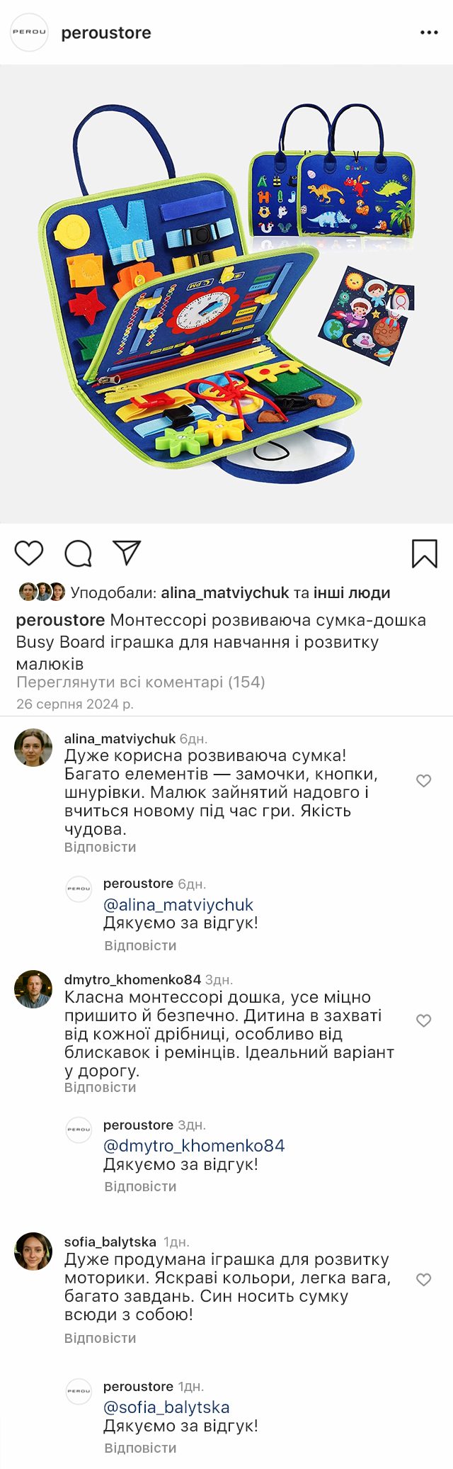 Монтессорі розвиваюча сумка-дошка Busy Board — це яскрава та захоплююча іграшка, яка допомагає малюкам розвивати моторику, логіку та увагу. Кожна деталь дошки продумана так, щоб дитина могла вчитися застібати блискавки, кнопки, пряжки та шнурки, тренуючи при цьому пальчики та координацію.