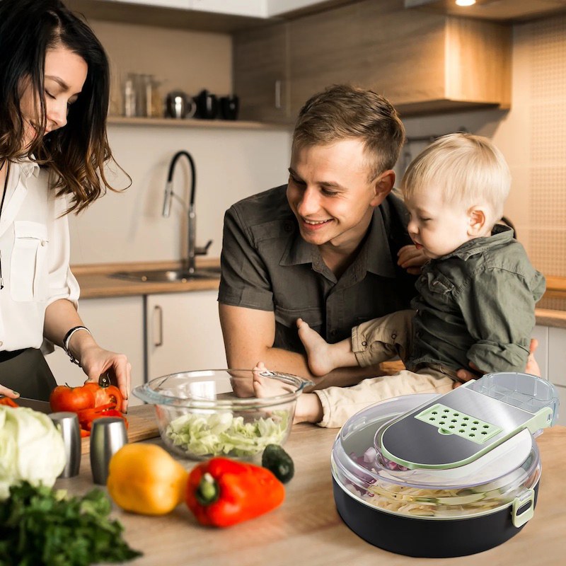 Багатофункціональна ручна овочерізка Vegetable Chopper Slicer Pro пропонує широкий спектр можливостей для швидкої та ефективної нарізки овочів та фруктів. Завдяки своїй унікальній конструкції та різноманітним насадкам вона дозволяє легко створювати різні форми та розміри нарізаних інгредієнтів.