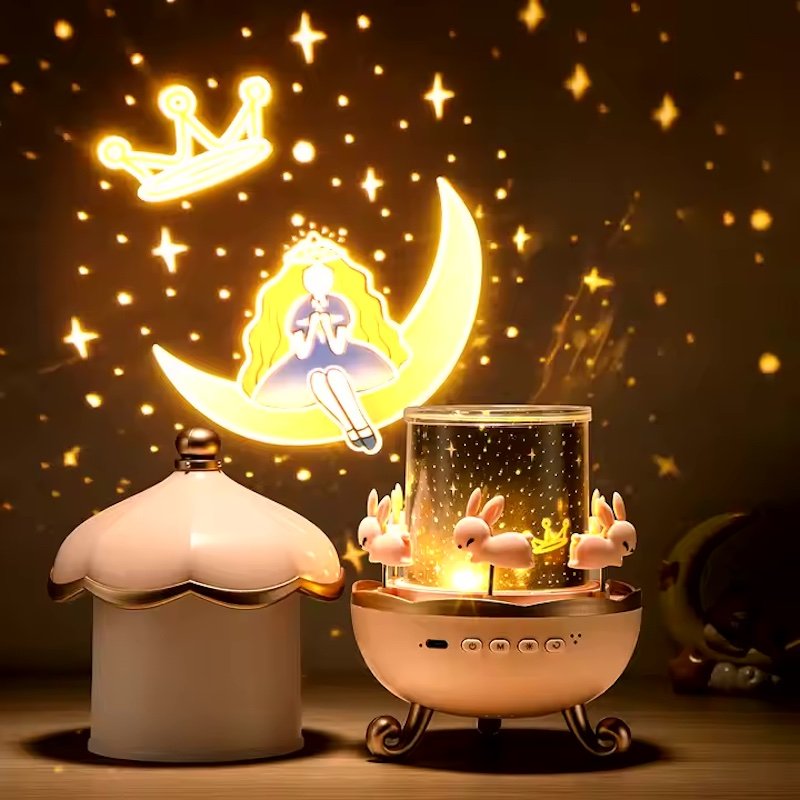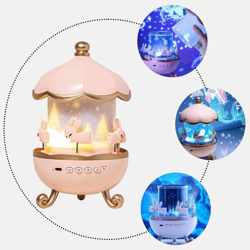 Світильник-нічник LED “Карусель зайчиків”, 12 мелодій + Bluetooth – проектор зоряного неба з проекціями перетворює будь-яке приміщення на чарівний космічний простір. За допомогою USB-підключення, ви зможете насолоджуватися зірковими візерунками, що зачаровують, і планетами, створюючи унікальну атмосферу для розслаблення і сну.