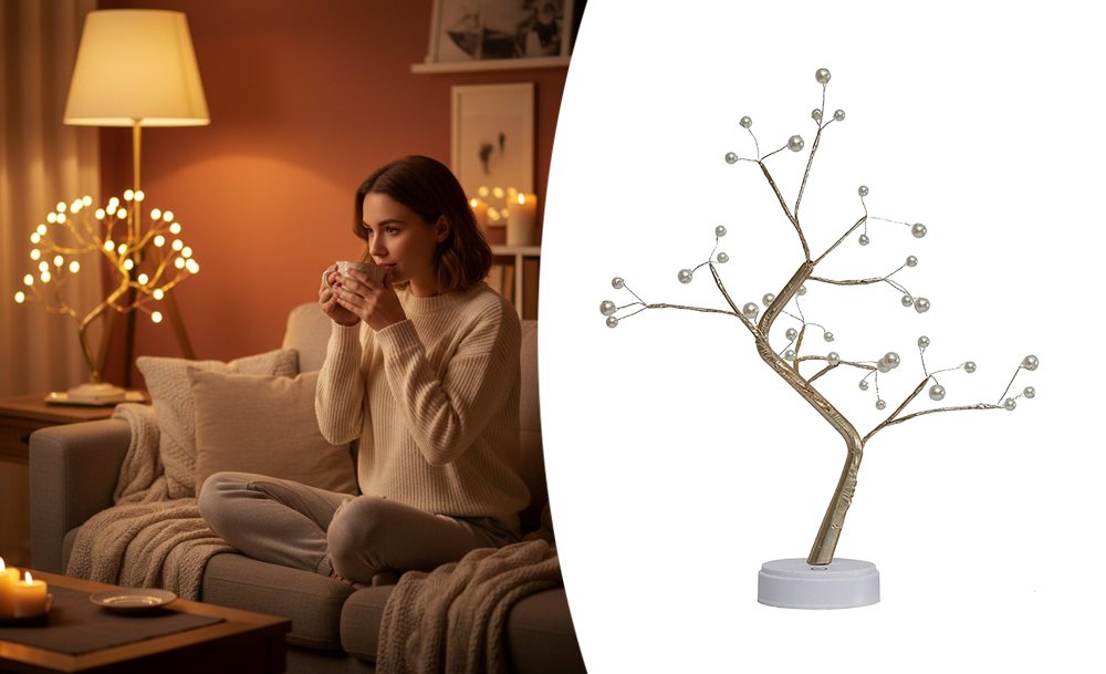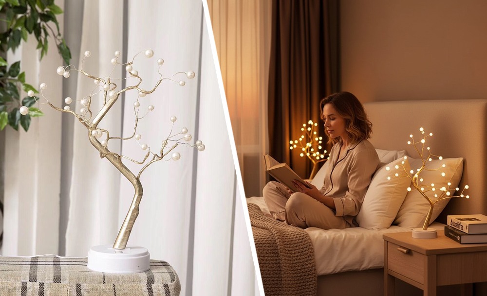 Елегантний настільний світильник-нічник, виконаний у формі стилізованого дерева, забезпечує м’яке, розсіяне освітлення завдяки інтегрованим LED-лампам. Гнучкі гілки дозволяють регулювати напрямок світла та створювати унікальну композицію. Функція сенсорного керування забезпечує легку зміну режимів й увімкнення/вимкнення одним дотиком.