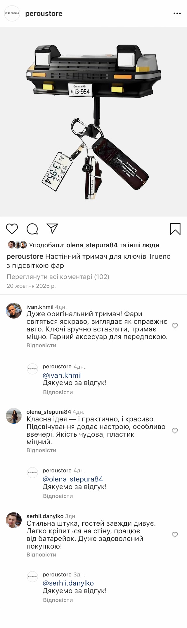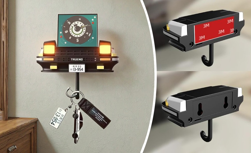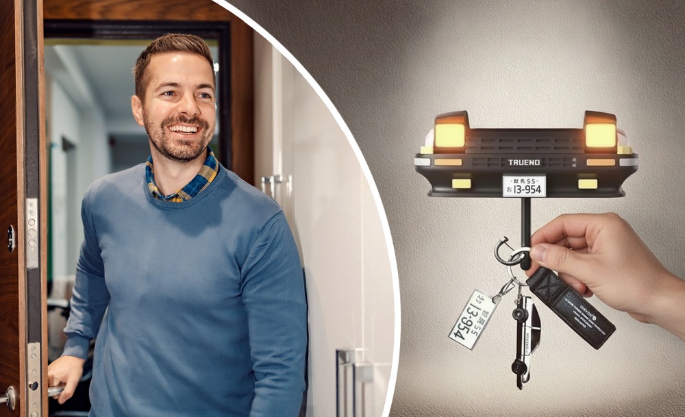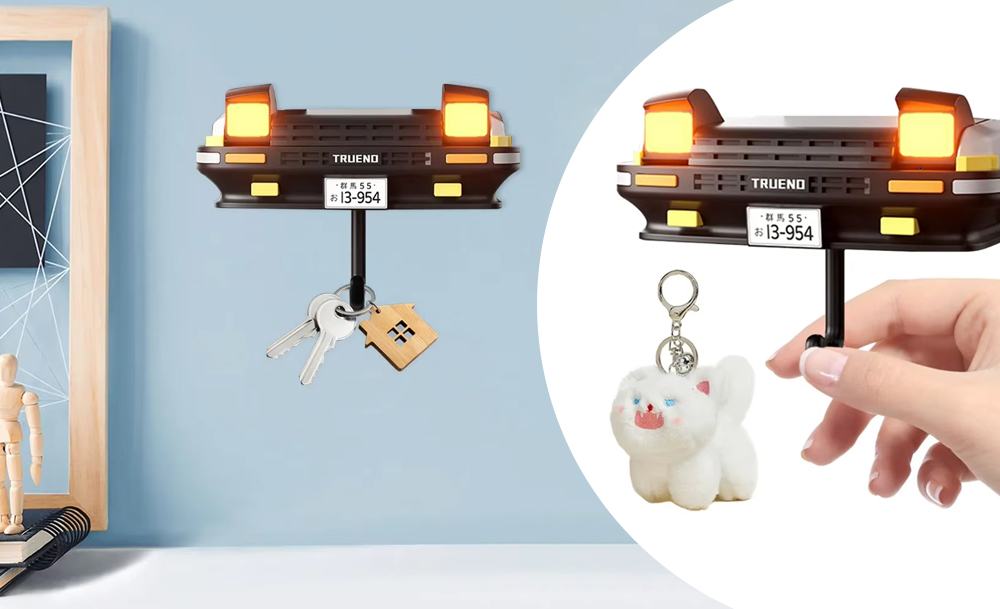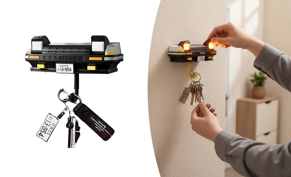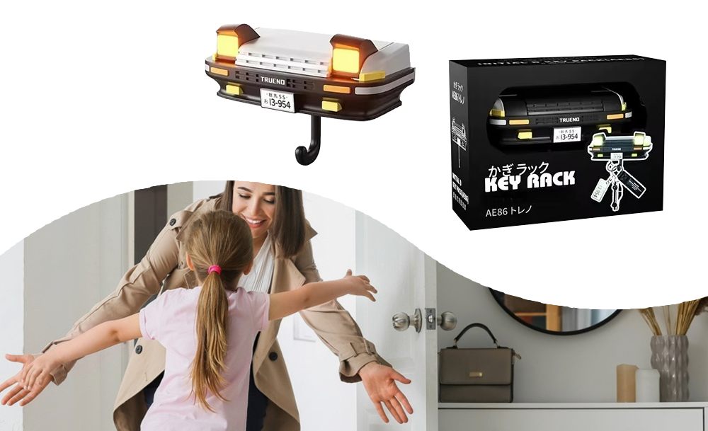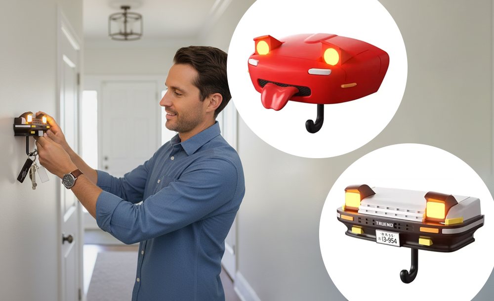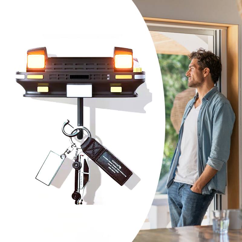 Настінний тримач для ключів Trueno поєднує практичність і декоративну функцію. Виготовлений із міцного матеріалу, він допомагає впорядкувати ключі та запобігає їх загубленню. Вбудована LED-підсвітка імітує світло автомобільних фар, створюючи м’який акцент у передпокої чи гаражі.