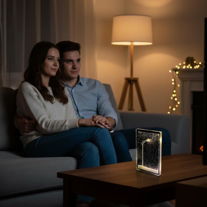 Новорічний світильник зі сніговою сценою — це затишний декоративний елемент, який створює атмосферу зимової казки в домі. Всередині прозорого корпусу розташована мініатюрна снігова композиція, а м’яке підсвічування підкреслює деталі та робить сцену по-справжньому чарівною.