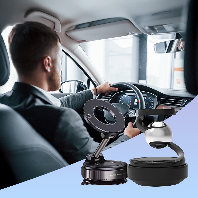 Обертовий автомобільний ароматизатор і магнітний автотримач на вакуумній присосці – комплект для максимального комфорту в дорозі. Надійна вакуумна присоска кріпиться до будь-якої поверхні та міцно утримує смартфон. Обертання на 360° дозволяє легко налаштувати потрібний кут, а сумісність з MagSafe робить девайс універсальним.