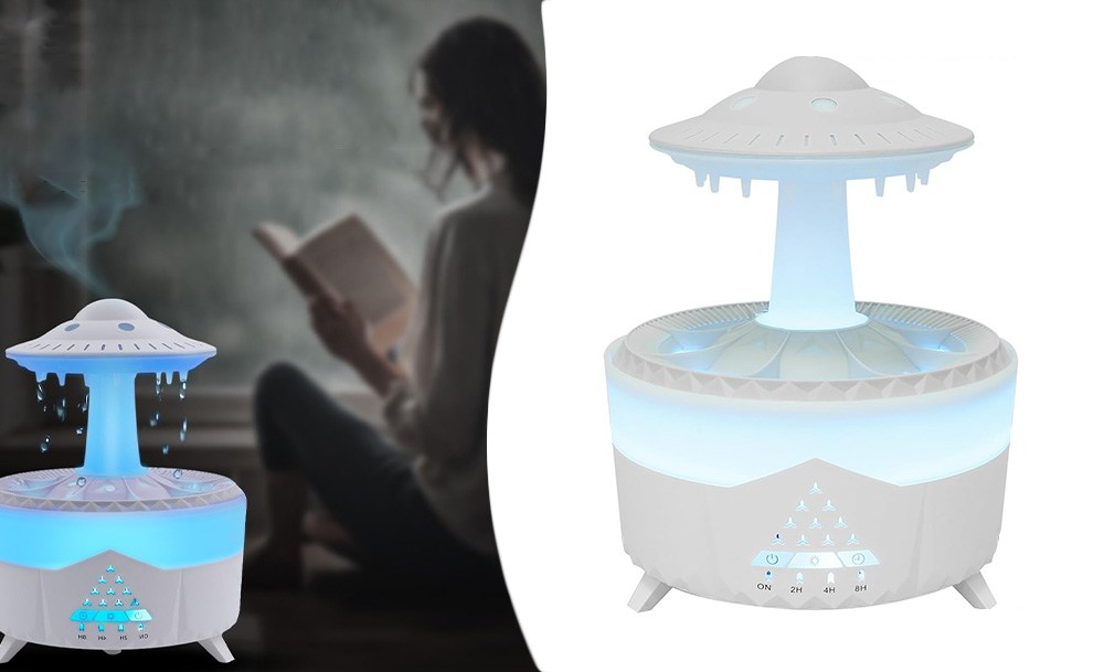 Дощова хмарка тепер із пультом! Унікальний зволожувач повітря з ефектом дощу та туману створює атмосферу спокою й затишку. Звуки білого шуму та дощу розслабляють і допомагають заснути.