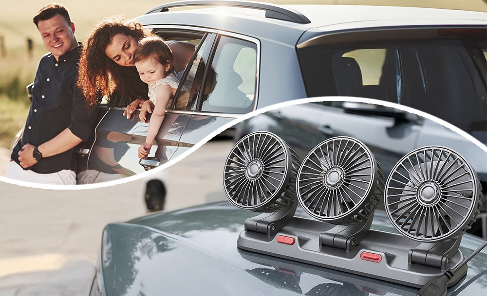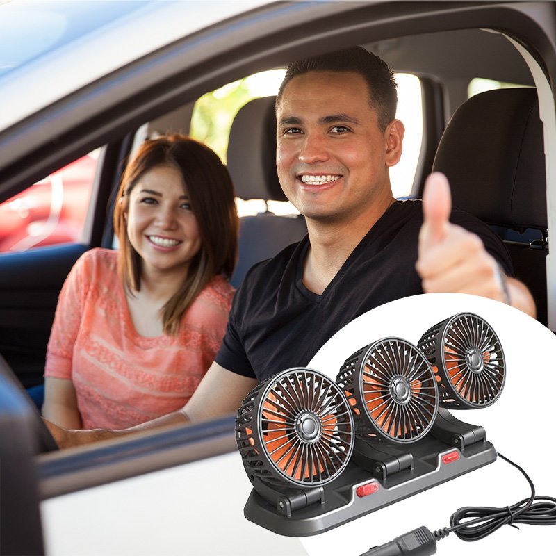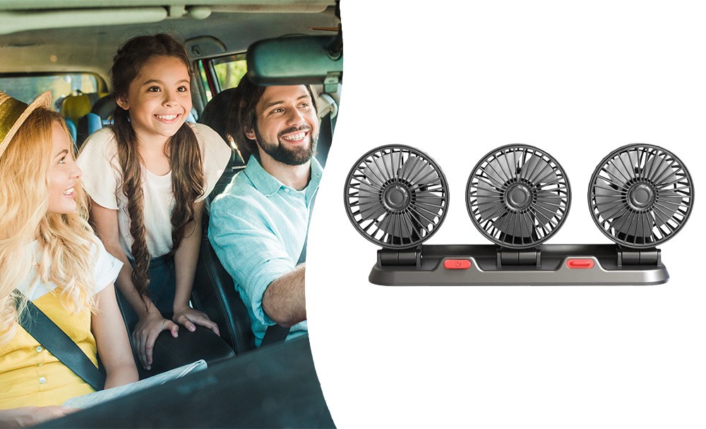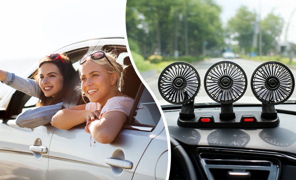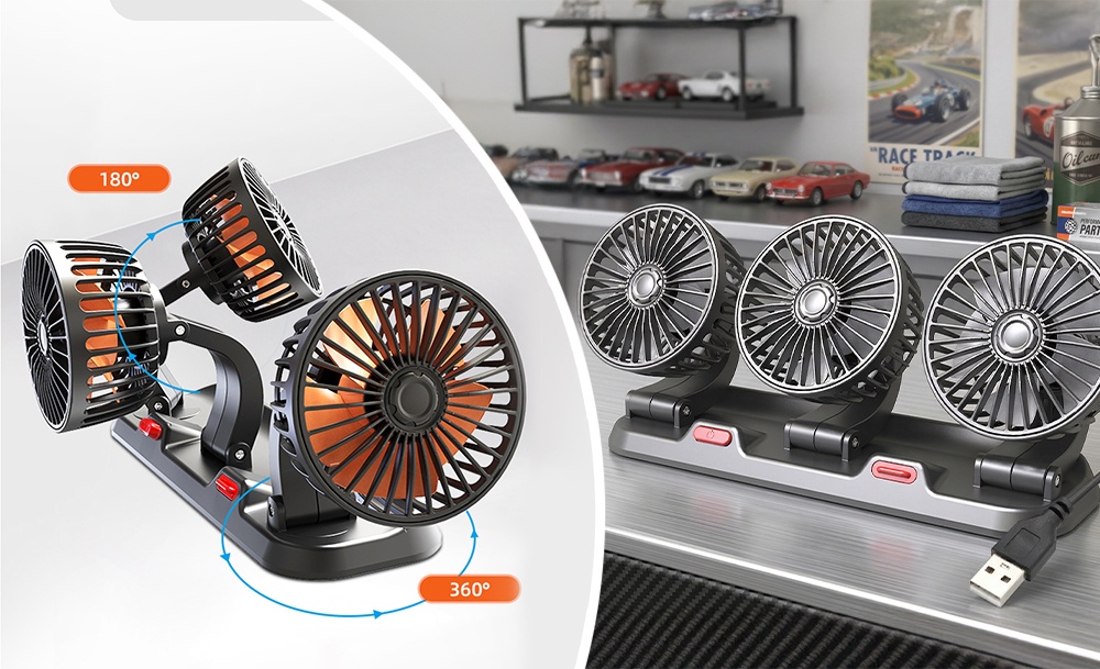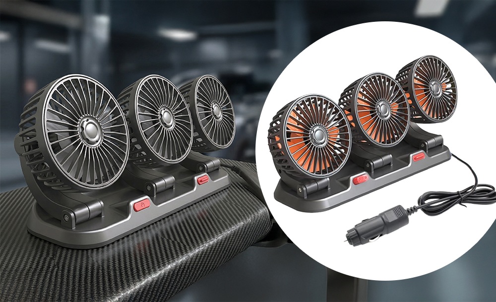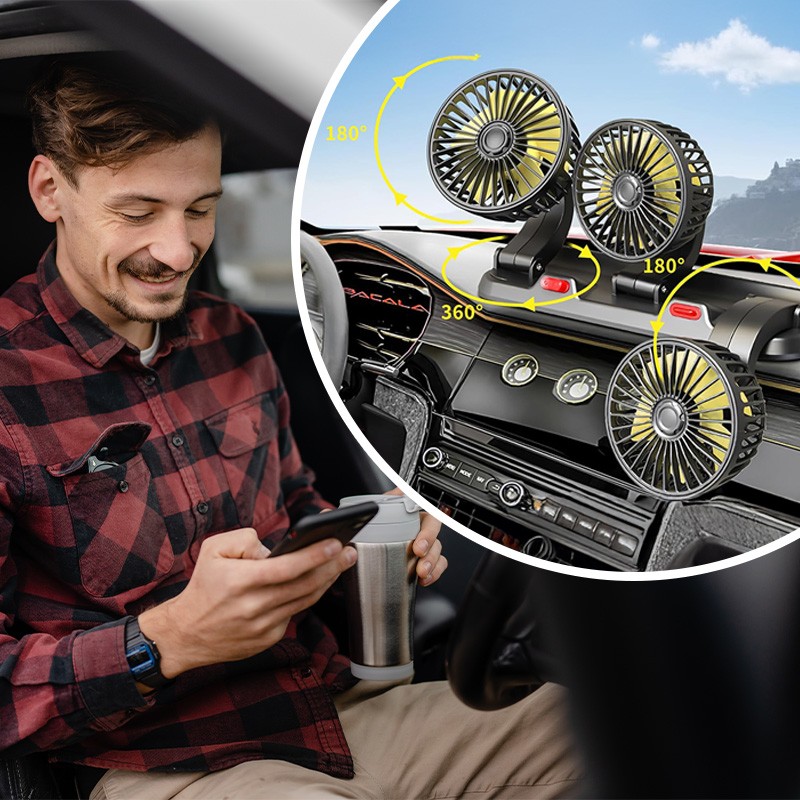 Потрійний автомобільний вентилятор з USB-живленням забезпечує ефективне охолодження салону в спеку. Три потужні прилади створюють рівномірний потік повітря, швидко знижуючи температуру всередині автомобіля. Завдяки повороту на 360° його легко направити в потрібну сторону для максимального комфорту.
