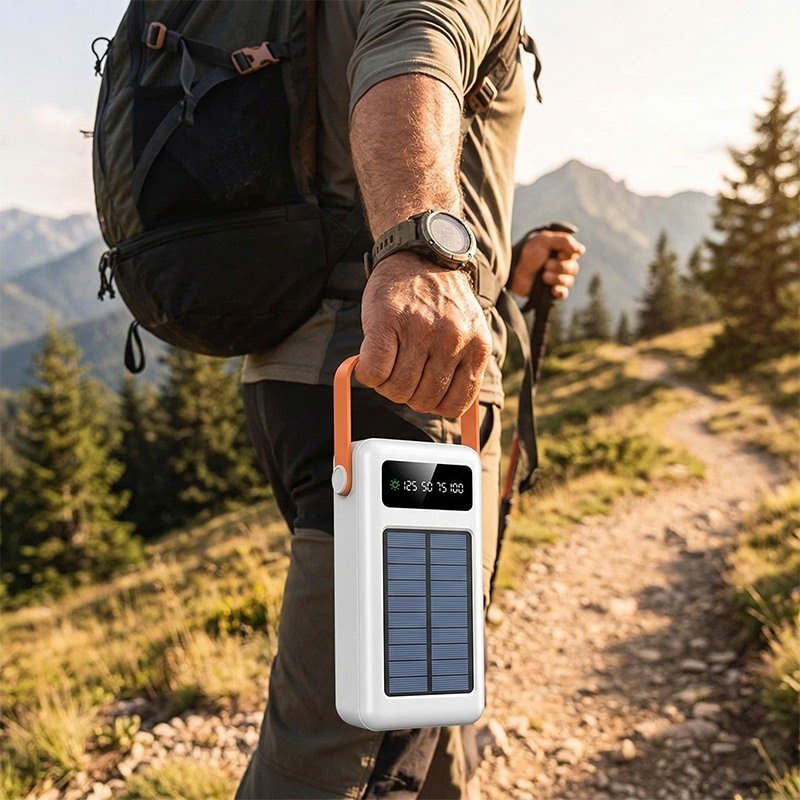 Вбудована сонячна панель робить повербанк особливо корисним у подорожах та на відпочинку. Пристрій забезпечений кількома виходами та вбудованими кабелями, тому не потребує додаткових дротів. Міцний корпус стійкий до повсякденного навантаження.