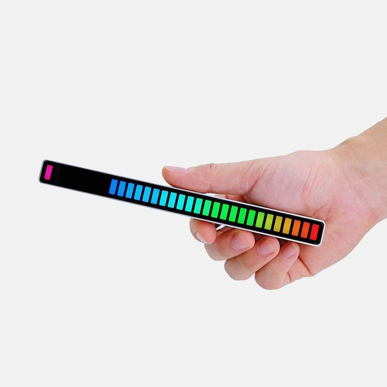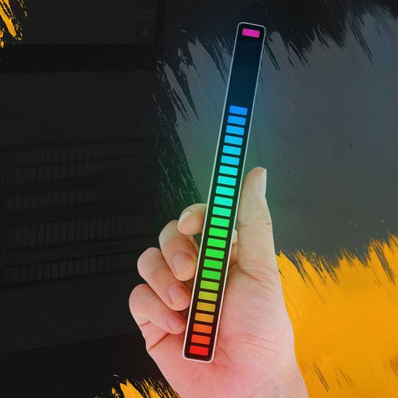 RGB світильник із музичним контролером дозволить створити оригінальну атмосферу в будинку, у студії чи в автомобілі. Вбудований чутливий мікрофон вловлює музику та будь-які інші звуки та за допомогою голосового керування відображає їх у 18 кольорових режимах.