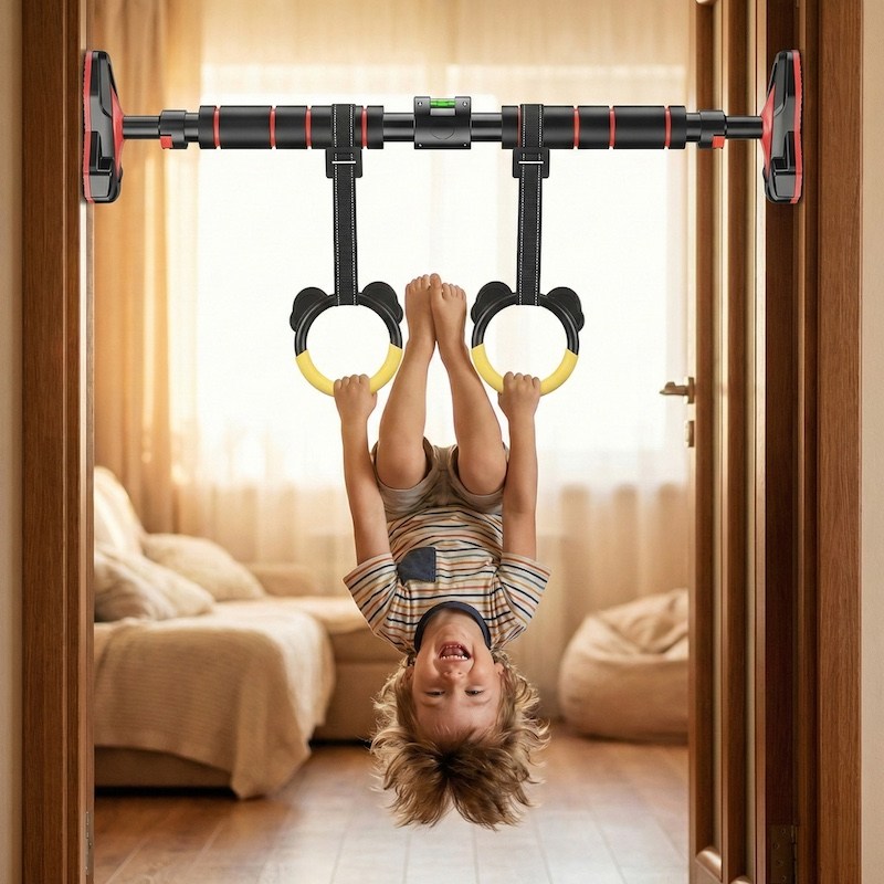 Розсувний турнік для підтягування з кільцями – ідеальне рішення для домашнього спортзалу. Регульована ширина від 64 до 88 сантиметрів дозволяє швидко встановлювати його у різних дверних отворах. Міцні кільця та надійна конструкція гарантують безпеку під час будь-яких вправ.