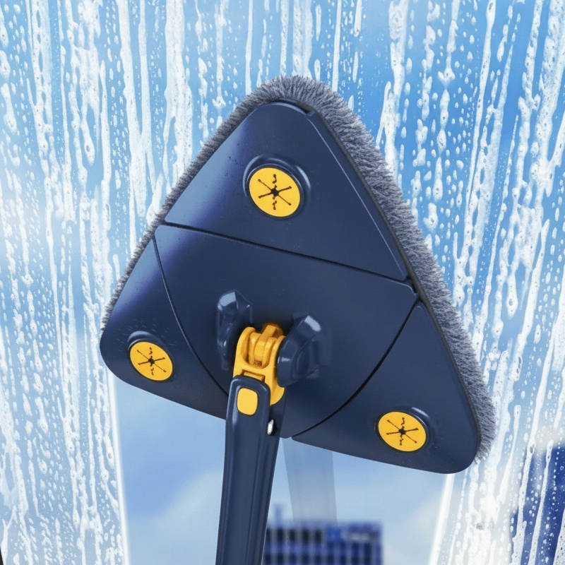 Універсальна трикутна швабра призначена для ефективного прибирання різних поверхонь. Її рухома на 360° насадка забезпечує легкий доступ до кутів, плінтусів та простору під меблями. Телескопічна ручка надійно фіксується на потрібній довжині, дозволяючи зручно мити високі стіни, стелі та вікна без драбини.