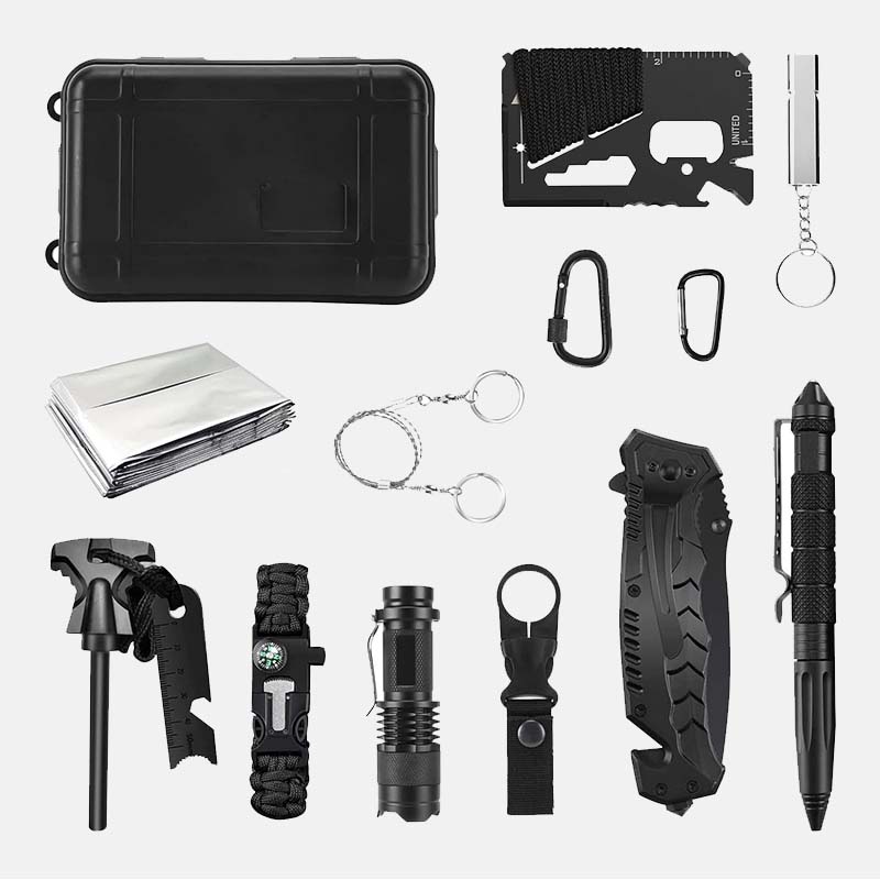 Набір для виживання 12 предметів – незамінний компаньйон у будь-якій екстремальній ситуації. Цей набір містить усе, що потрібно для виживання в дикій природі: ніж, компас, термоковдру, ручку, струнну пилку та безліч інших предметів.