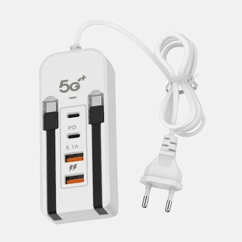 Універсальний зарядний пристрій 20 Вт зі вбудованими кабелями Type-C та Lightning і мережна зарядка на 2 USB та 2 PD – це зручний комплект для швидкого підзаряджання будь-яких девайсів. Продумане поєднання дозволяє обходитися без зайвих проводів та адаптерів, заощаджуючи місце та час.