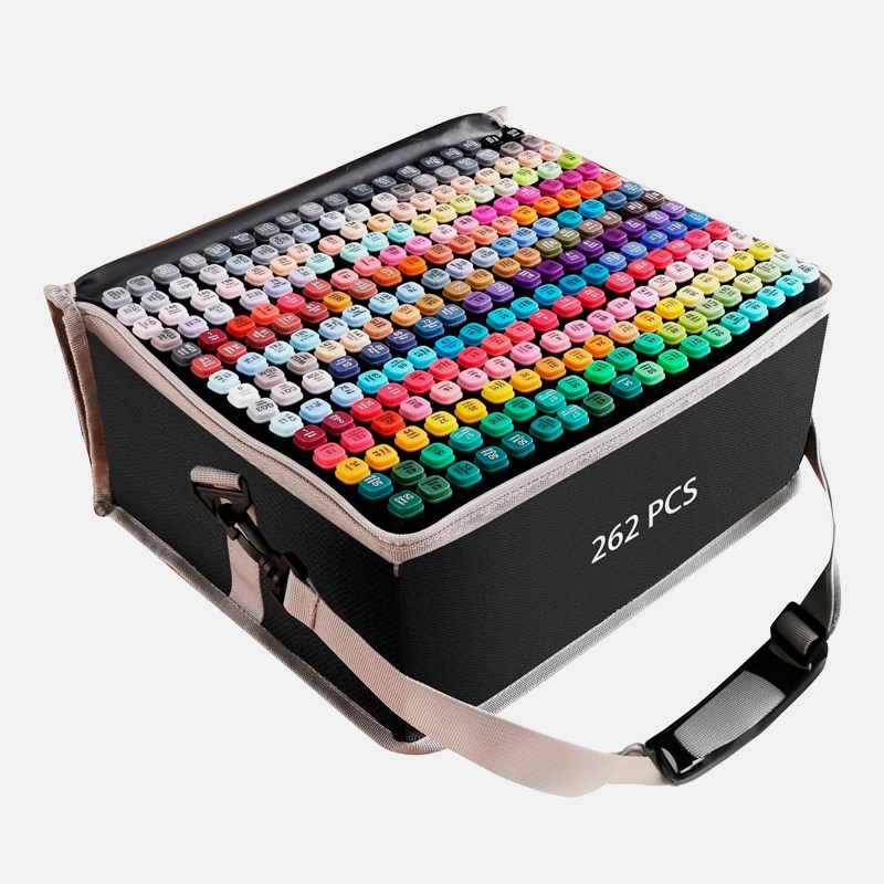 Маркери мають два пера – тонке та широке. Заправлені без кислотним нетоксичним чорнилом. Відмінно поєднуються, створюють плавні градієнти. Вся палітра кольорів цих маркерів складається з 262 кольорів.