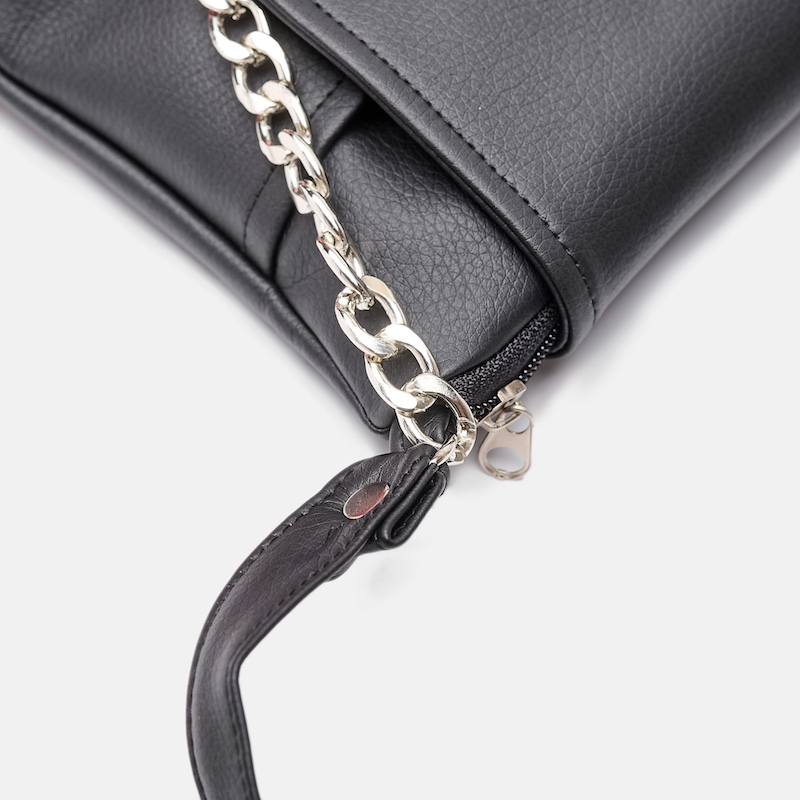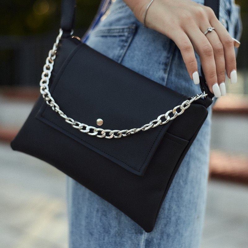 Сумочка легка, маленька, але містка, що дозволить розмістити всередині всі необхідні речі – ключі, телефон, документи, косметику та багато іншого. Цю модель можна носити через плече на міцному подовженому ремені, або в руці на ланцюжку, який є додатковою прикрасою. Ця молодіжна сумка відмінно підійде для повсякденного носіння в будь-якій ситуації.