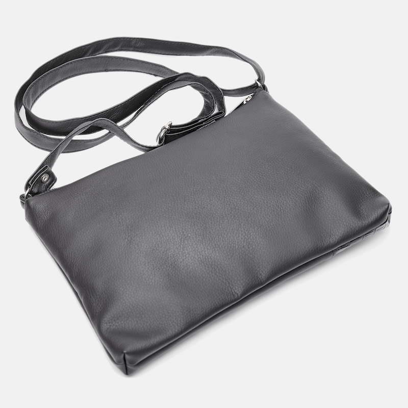 Сумку зручно носити через плече на міцному подовженому ремінці. Вона забезпечена блискавкою та якісною нікельованою фурнітурою, яка не потемніє та збереже свій вигляд. Стриманий дизайн без яскравих деталей довго буде актуальним та ідеально доповнить модний образ.