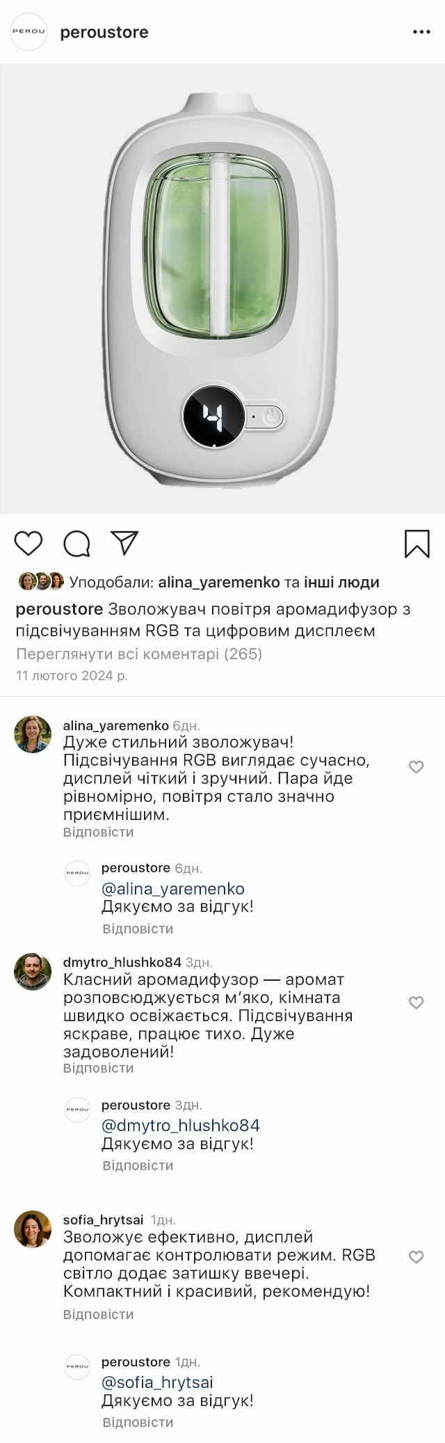 Світлодіодне RGB-підсвічування додає затишку та атмосфери, а цифровий дисплей зручно показує рівень води та налаштування. Компактний і тихий, цей зволожувач стане незамінним помічником для сну, роботи й відпочинку, роблячи ваш дім ще більш комфортним та приємним.